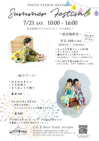 7/21 夏まつりイベント浴衣での撮影会と縁日を行いますどちらかのみの参加でもOK